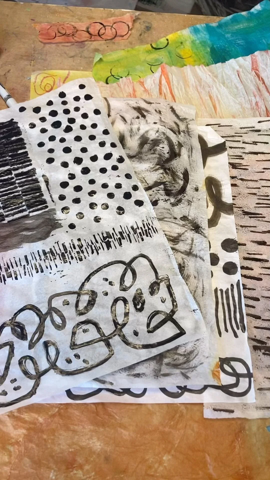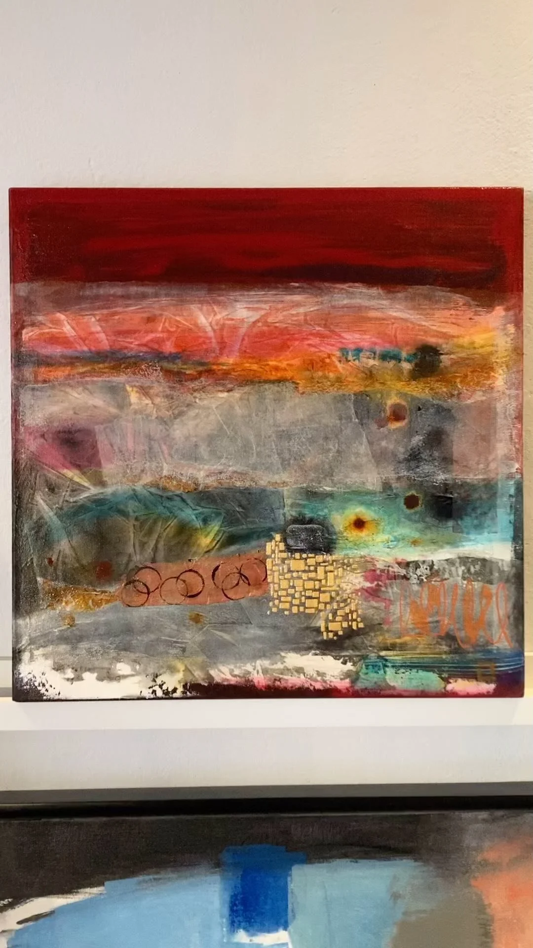 I mainly work in acrylic paint and include other mediums such as inks, oil sticks and wax pencil for various mark-making. I also include handmade collage paper and other textural material to many of my pieces for depth and interest.